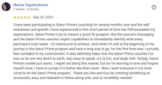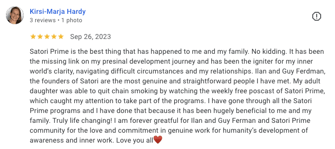 Get access to hours of live training, hosted by Guy & Ilan Ferdman, co-founders of Satori Prime, as we delve deep into the world of personal transformation. You'll learn dynamic personal and group healing practices passed down to us by teachers from both the ancient world and modern psychology. We've refined these intro practices and principles into practical transformational experiences supported by the latest neuroscience and quantum physics research.