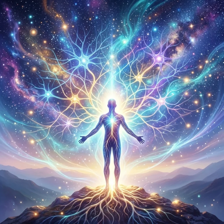 Visual: A vibrant, psychedelic depiction of the Vagus nerve branching out like a tree of life through a translucent human torso, glowing with iridescent energy.